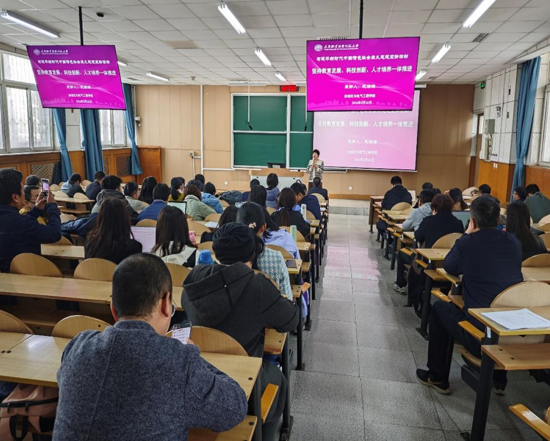 克念主义教院青年教员武培培为主动化取电气呼呼工程教院党员老师做“维持教导成长、科技立异、人材培育种植提拔1体促进”的主旨宣道。从教导、科技、人材3者干系、汗青履历、期间成长、强邦扶植4个圆面临僵持教导成长、科技更始、人材培育种植提拔1体促成的紧张道理停止领会读。