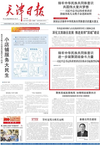 《天津日报》:铸牢中华民族共同体意识 进一步凝聚团结奋斗力量──习近平总书记的重要讲话在我市引起强烈反响